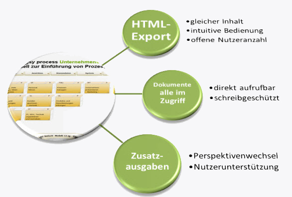 Der Web-Export baut auf dem Einsatz von e@sy process auf und gibt Ihnen im Paket genau die Anwendungsmöglichkeiten, die durch die unterschiedlichen Nutzungsprofile benötigt werden.